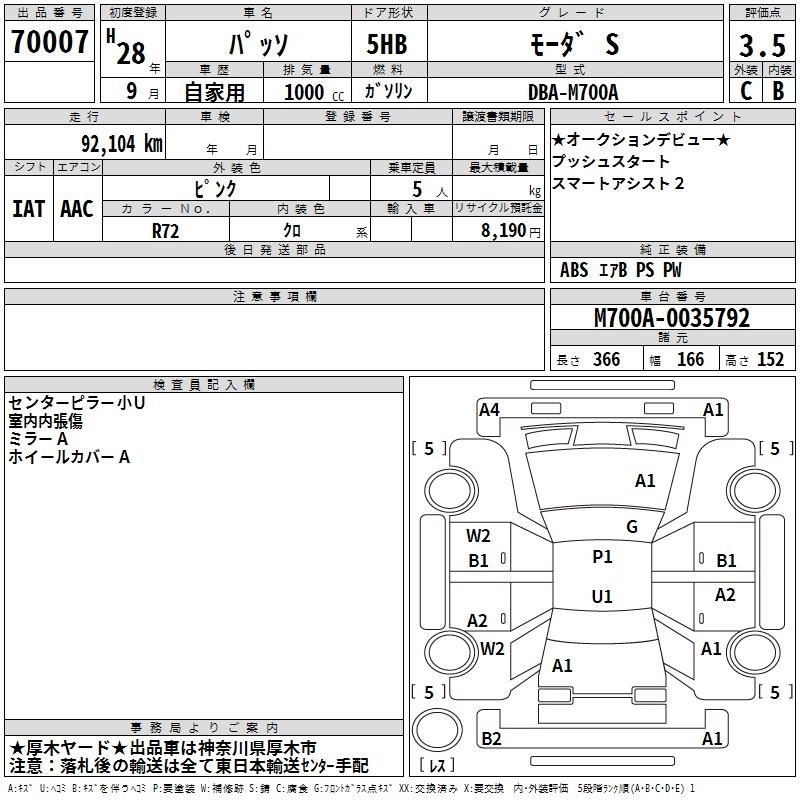 TOYOTA PASSO 2016 г., лот № 70007
