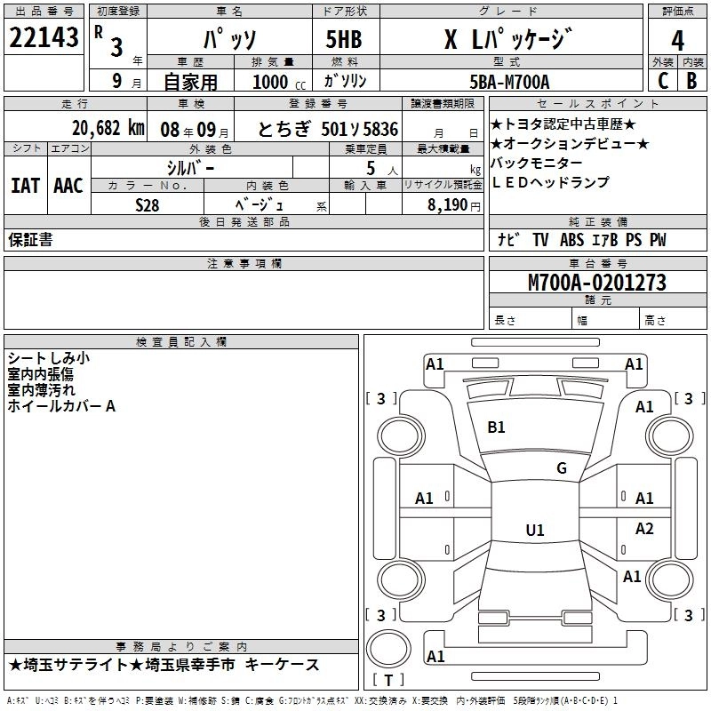 TOYOTA PASSO 2021 г., лот № 22143