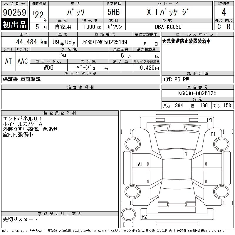 TOYOTA PASSO 2010 г., лот № 90259