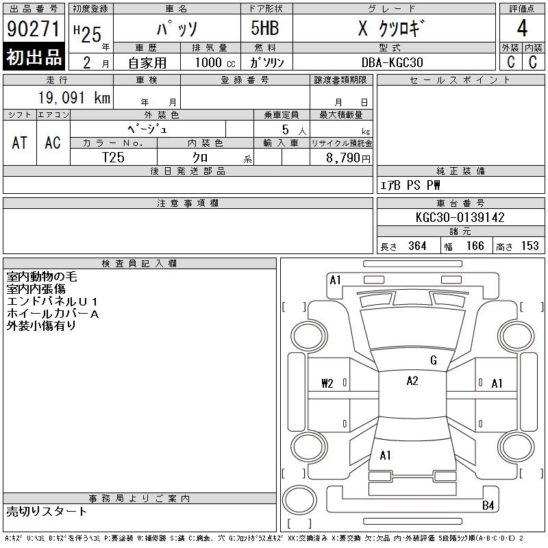 TOYOTA PASSO 2013 г., лот № 90271