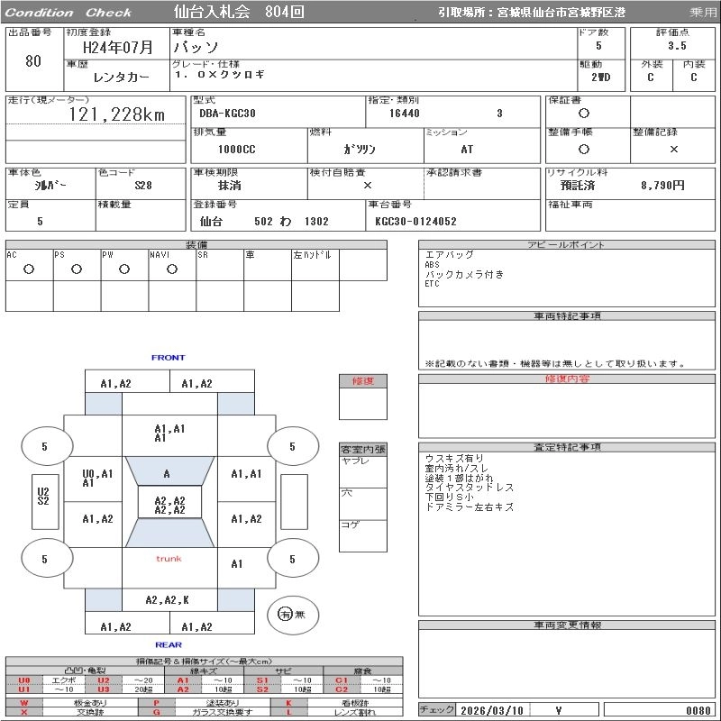 Статус выставлен на аукцион Лот 80 Аукцион ORIX Sendai Дата аукциона 17.03.2026