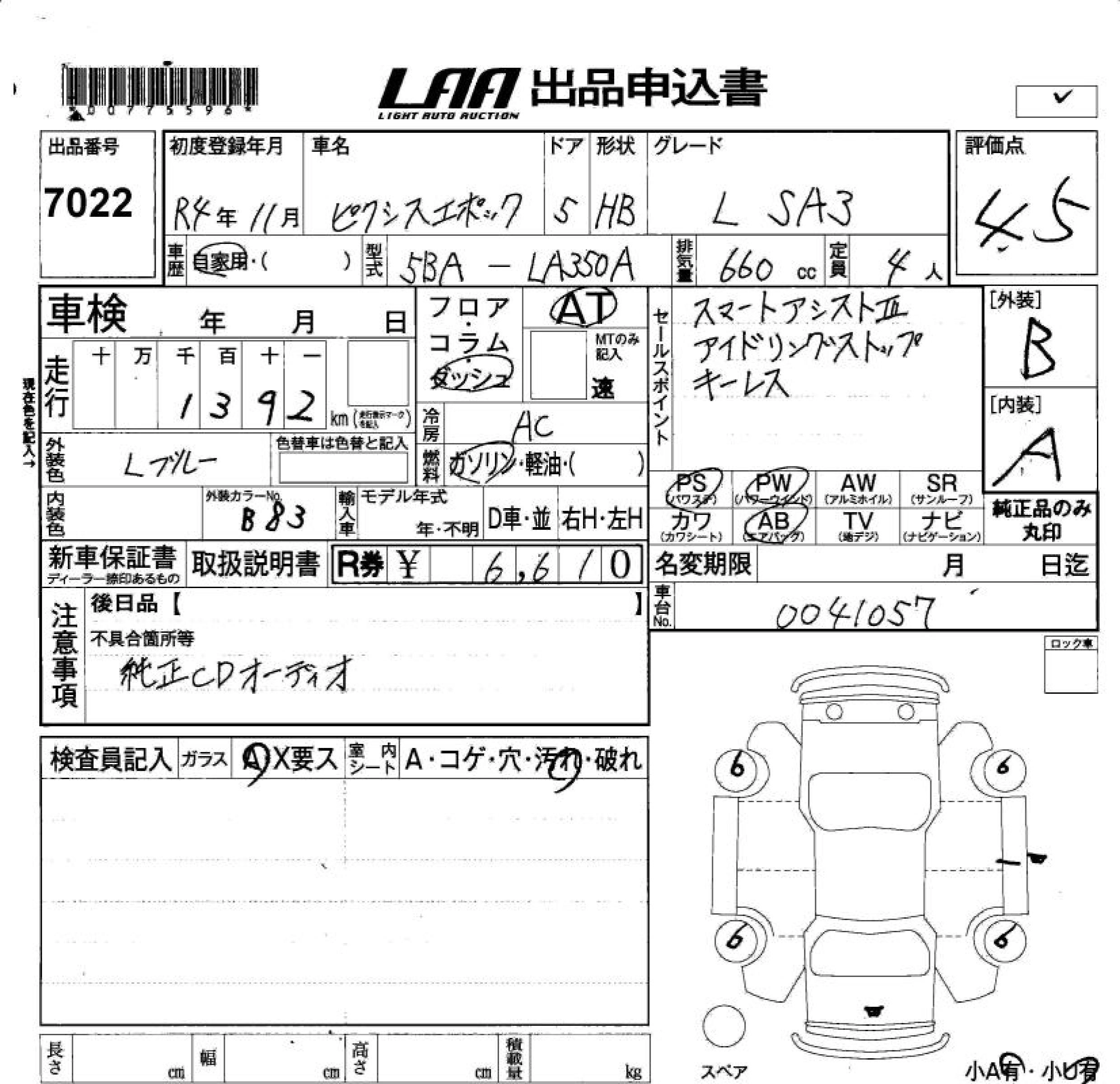 Статус не продан Лот 7022 Аукцион LAA Okayama Дата аукциона 23.01.2026
