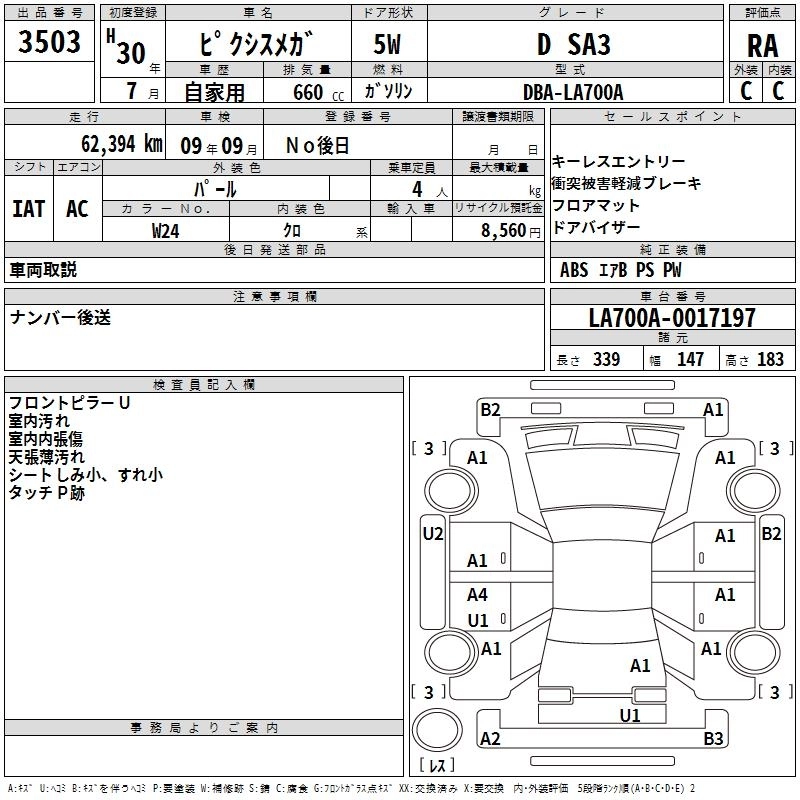 Статус выставлен на аукцион Лот 3503 Аукцион TAA Chubu Дата аукциона 11.12.2025