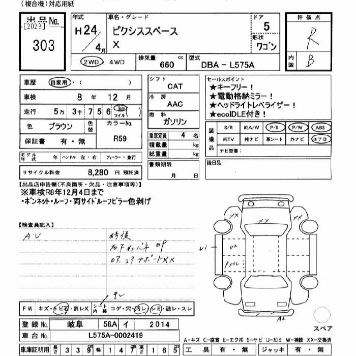 TOYOTA PIXIS SPACE 2012 г., лот № 303