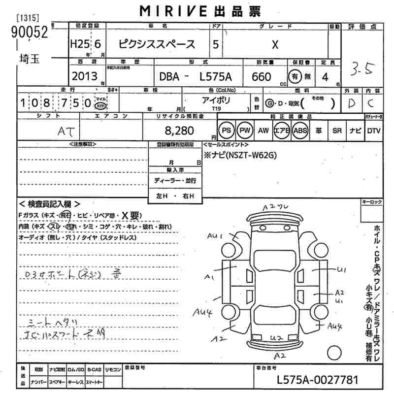 Статус выставлен на аукцион Лот 90052 Аукцион MIRIVE Saitama Дата аукциона 28.01.2026