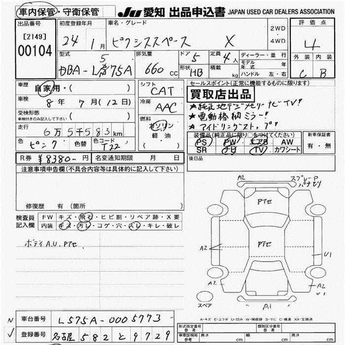 Статус выставлен на аукцион Лот 104 Аукцион JU Aichi Дата аукциона 12.03.2026