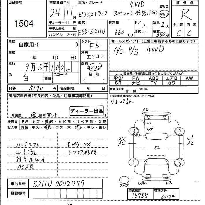 95 000 км КузовS211U Комплектация4WD SPECIAL AIR CONDITIONER POWER STEERING VER.