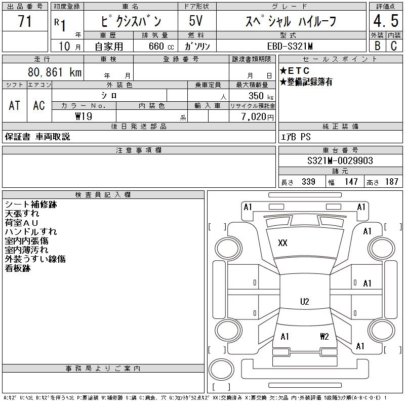 Год выпуска2019 Пробег 81 000 км КузовS321M Комплектация SPECIAL HIGH ROOF