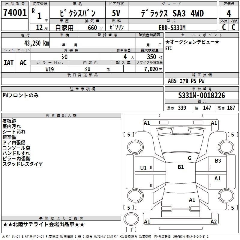 Статус выставлен на аукцион Лот 74001 Аукцион TAA Chubu Дата аукциона 25.12.2025