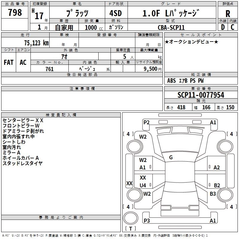 Год выпуска2005 Пробег 75 000 км КузовSCP11 Комплектация1.0F L PACKAGE