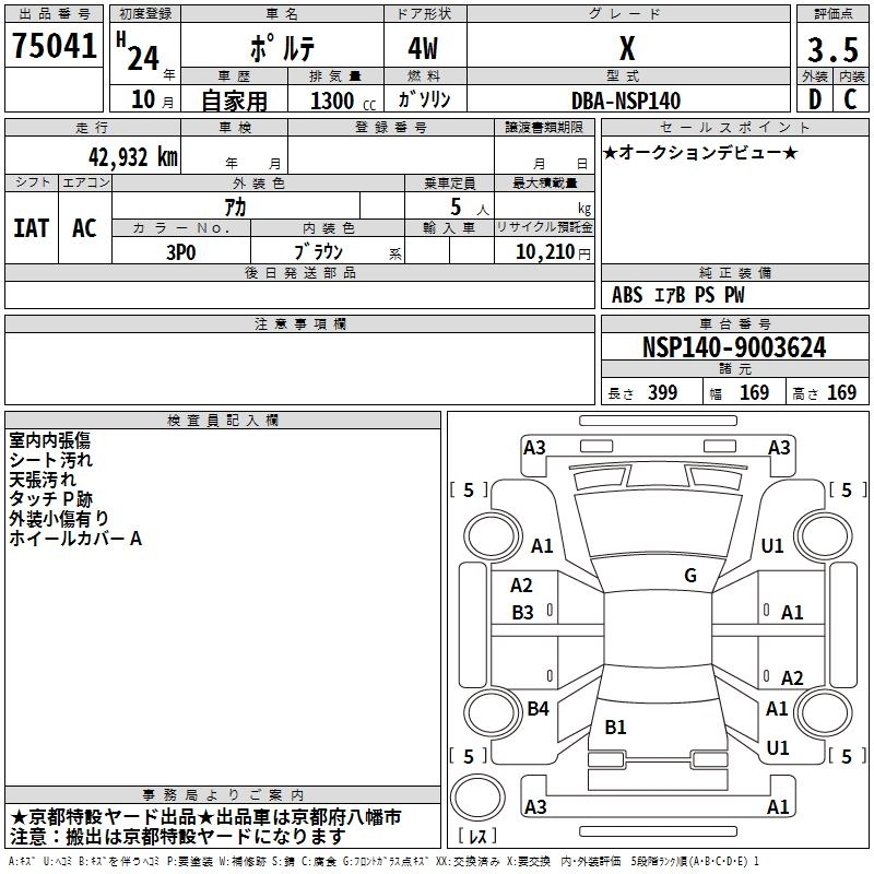 TOYOTA PORTE 2012 г., лот № 75041