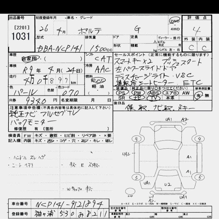 TOYOTA PORTE 2014 г., лот № 1031