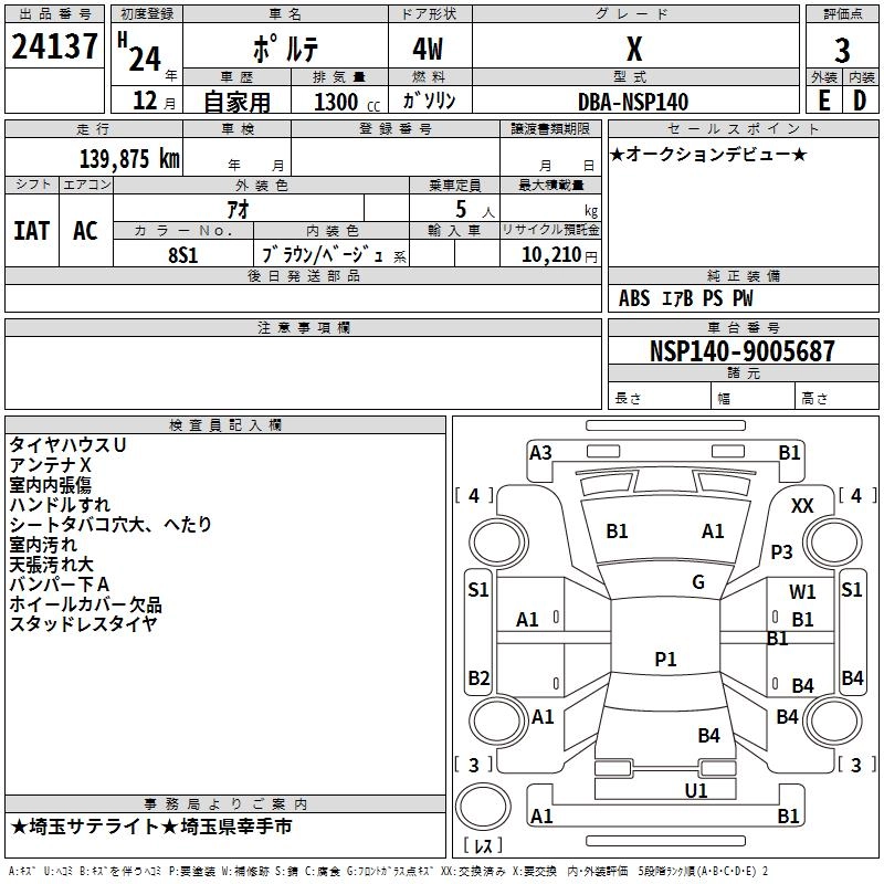 Год выпуска2012 Пробег 140 000 км КузовNSP140 КомплектацияX
