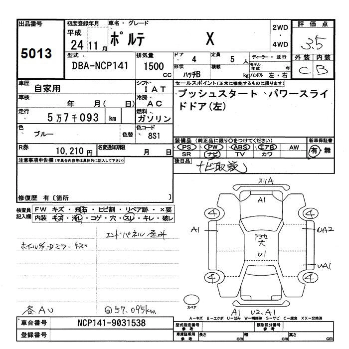 TOYOTA PORTE 2012 г., лот № 5013
