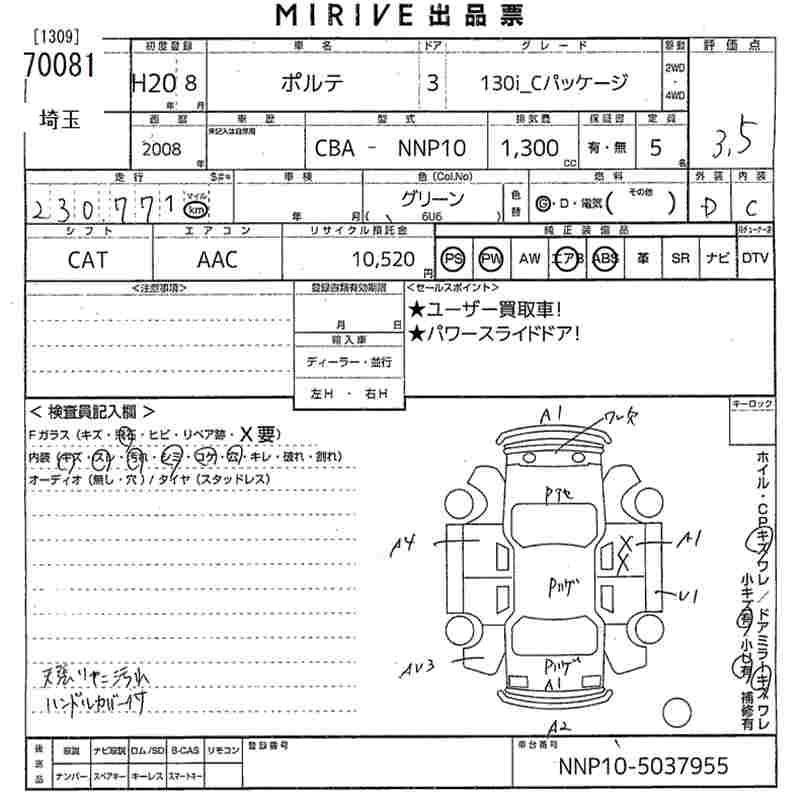 TOYOTA PORTE 2008 г., лот № 70081