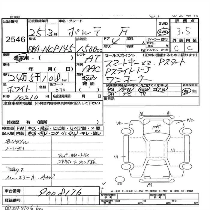 TOYOTA PORTE 2013 г., лот № 2546