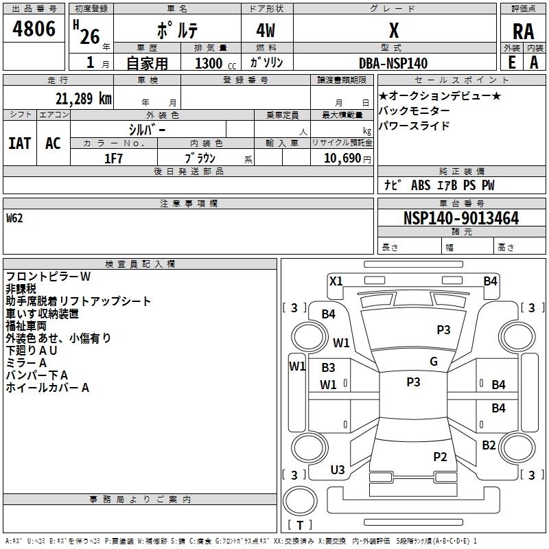 TOYOTA PORTE 2014 г., лот № 4806