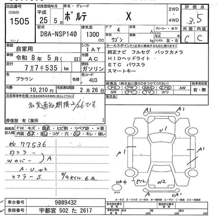 TOYOTA PORTE 2013 г., лот № 1505