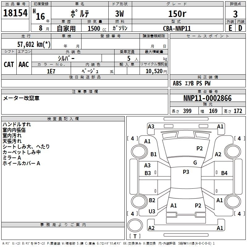 Год выпуска2004 Пробег 58 000 км КузовNNP11 Комплектация150r