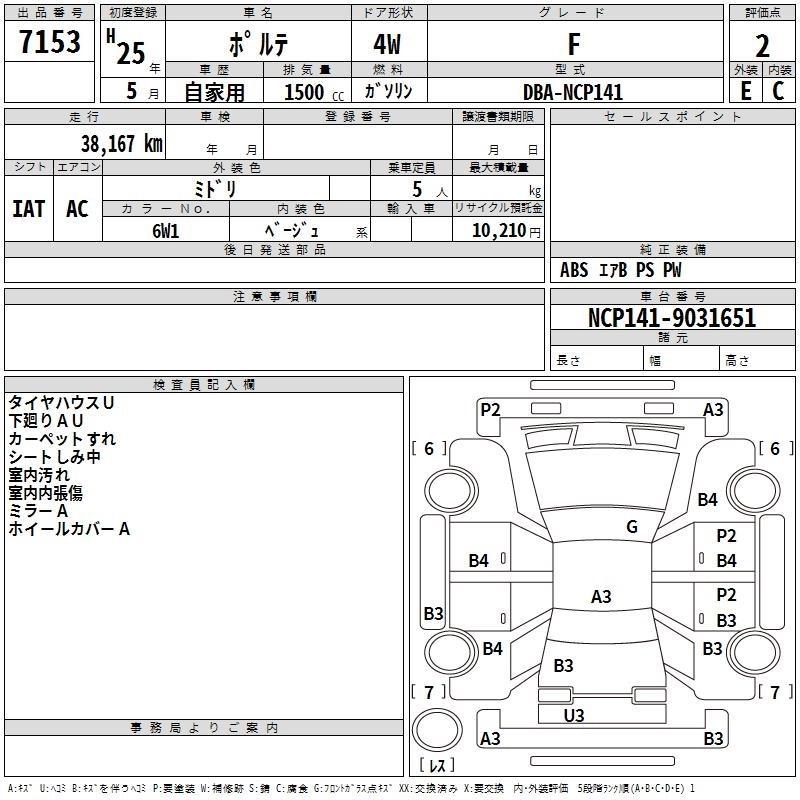 TOYOTA PORTE 2013 г., лот № 7153
