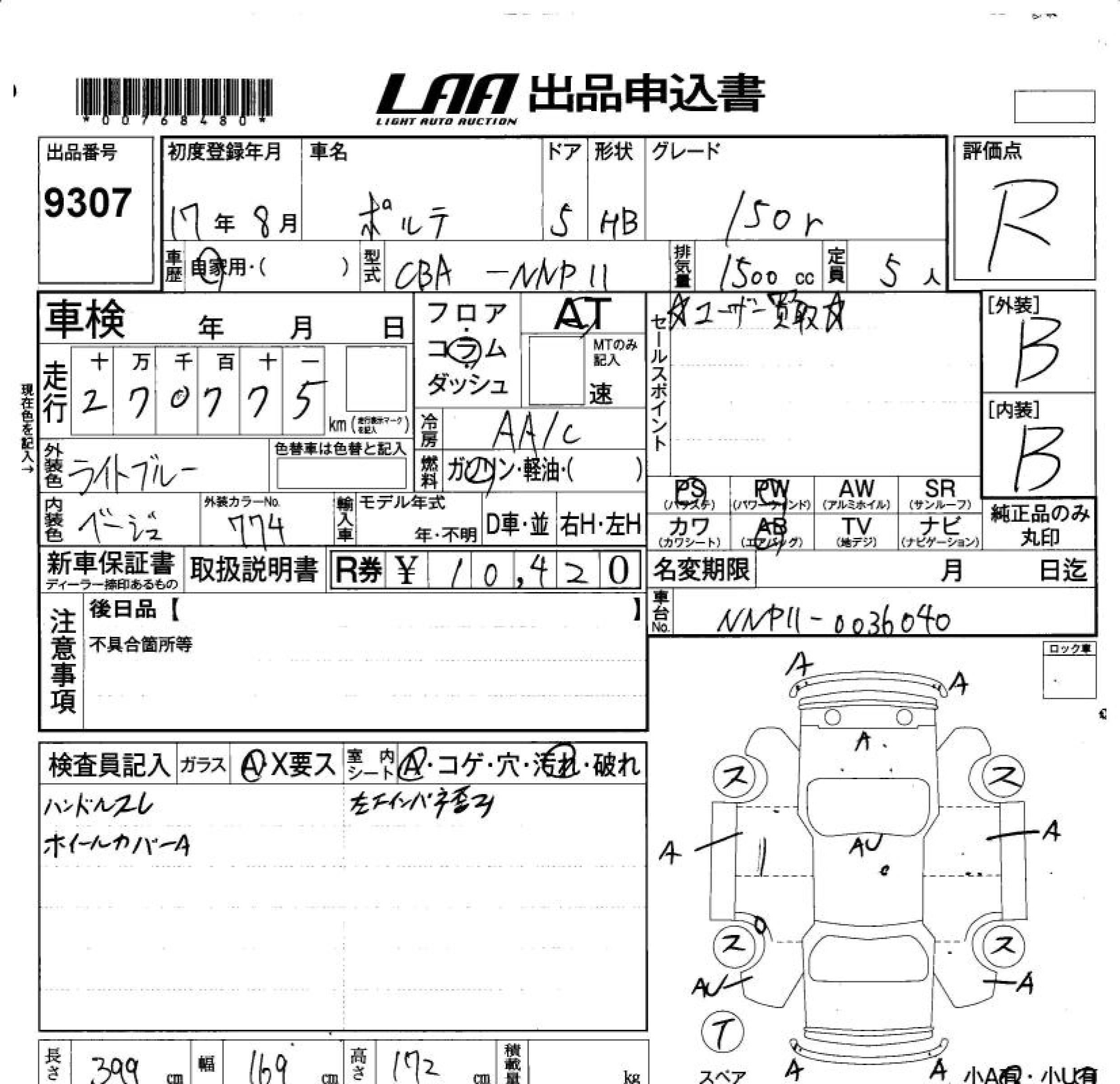 Статус продан Лот 9307 Аукцион LAA Okayama Дата аукциона 06.02.2026