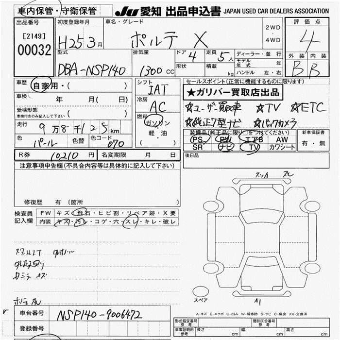 Год выпуска2013 Пробег 98 000 км КузовNSP140 КомплектацияX