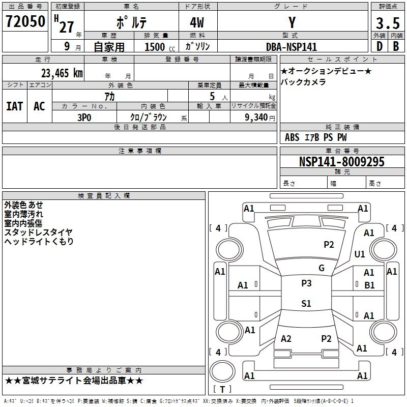 TOYOTA PORTE 2015 г., лот № 72050