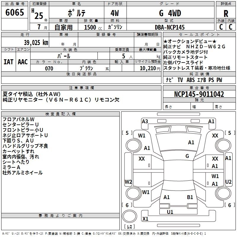 TOYOTA PORTE 2013 г., лот № 6065