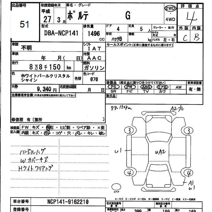 TOYOTA PORTE 2015 г., лот № 51