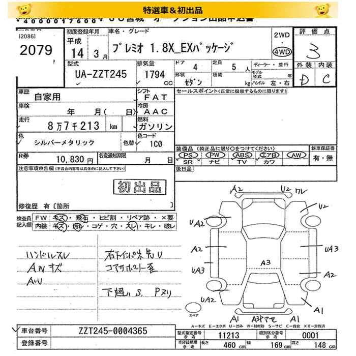 TOYOTA PREMIO 2002 г., лот № 2079