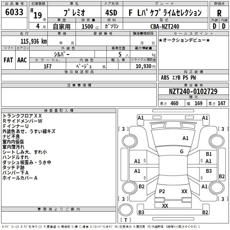 TOYOTA PREMIO 2007 г., лот № 6033