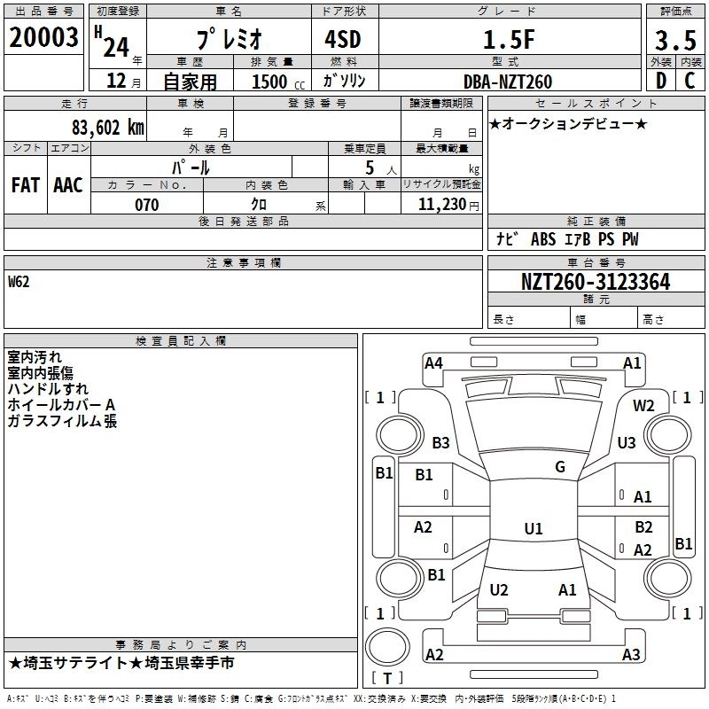 TOYOTA PREMIO 2012 г., лот № 20003