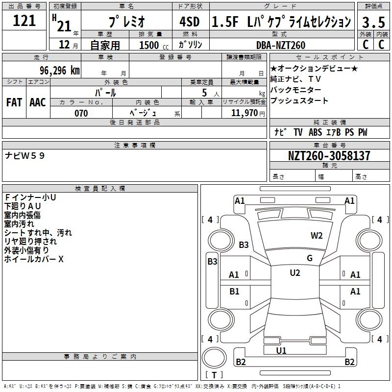 TOYOTA PREMIO 2009 г., лот № 121