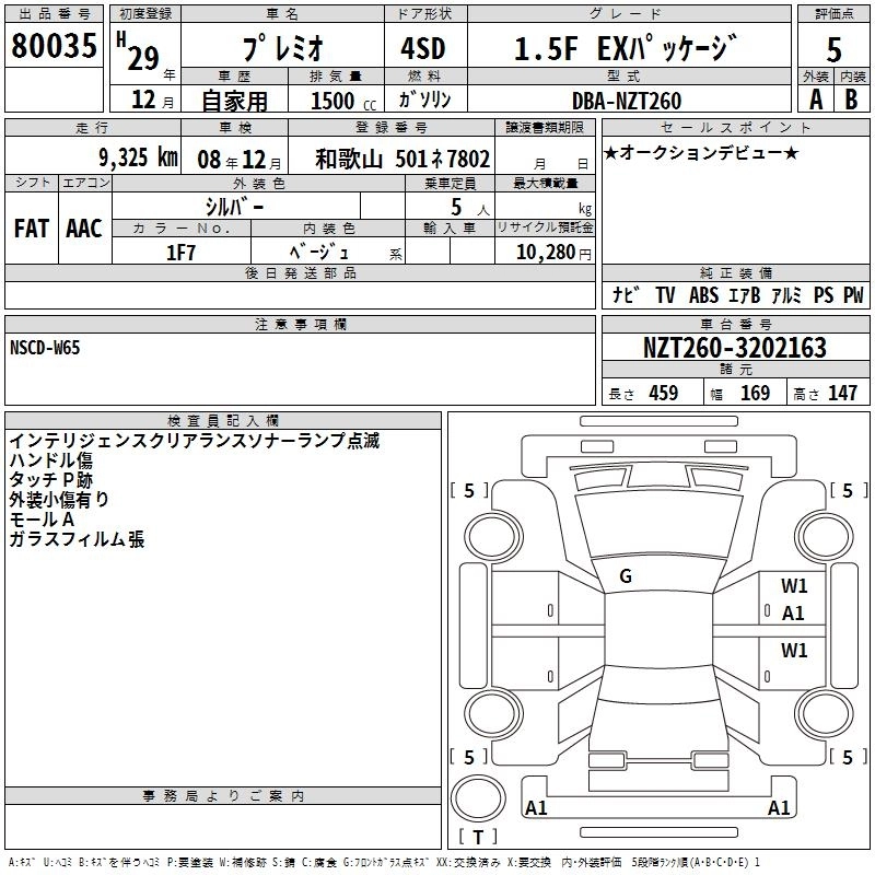 TOYOTA PREMIO 2017 г., лот № 80035
