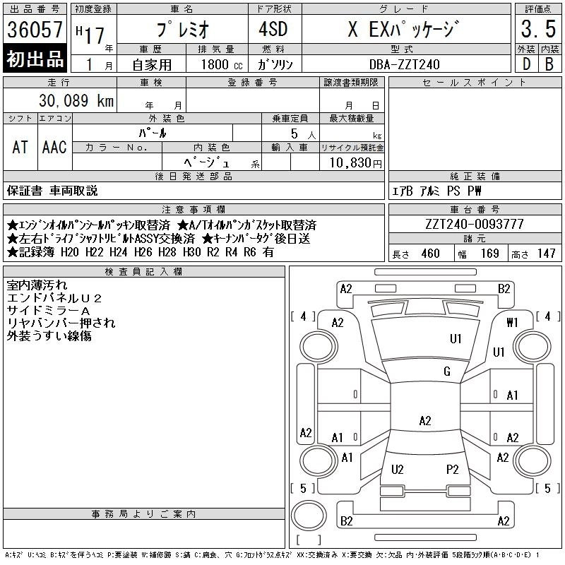 TOYOTA PREMIO 2005 г., лот № 36057