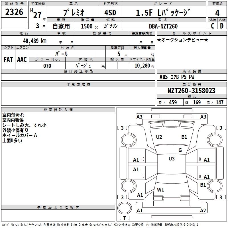 TOYOTA PREMIO 2015 г., лот № 2326