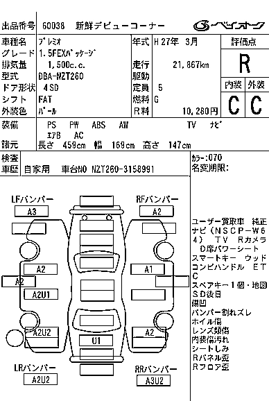 TOYOTA PREMIO 2015 г., лот № 60038