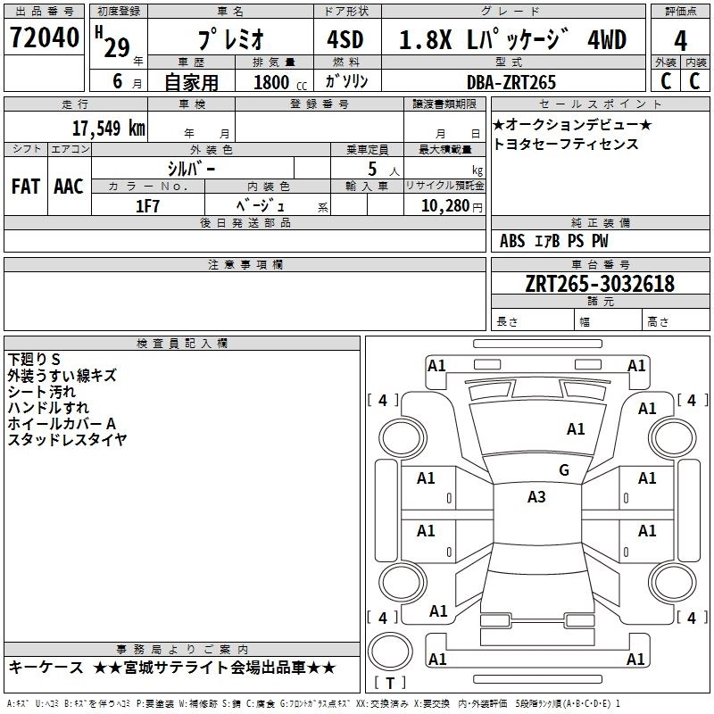TOYOTA PREMIO 2017 г., лот № 72040