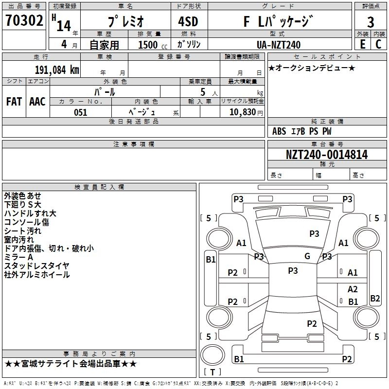 TOYOTA PREMIO 2002 г., лот № 70302