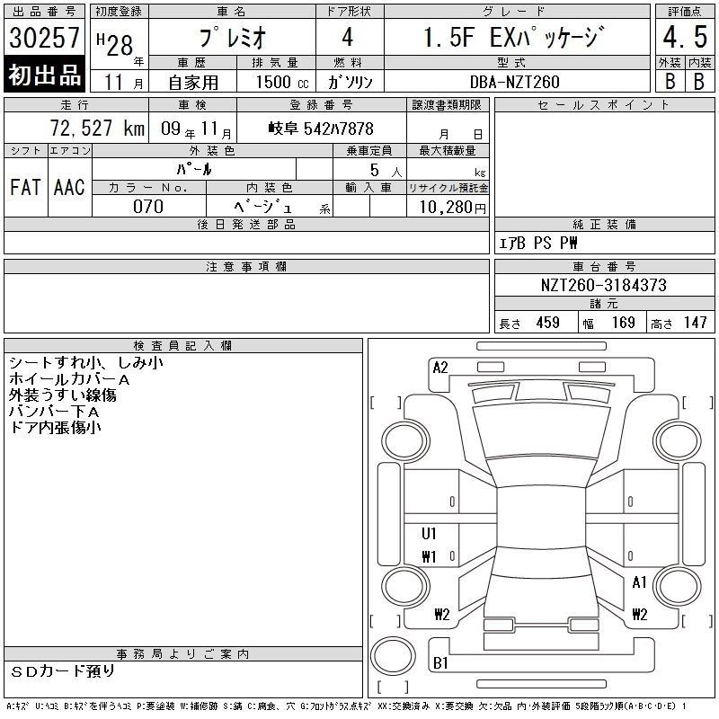 TOYOTA PREMIO 2016 г., лот № 30257