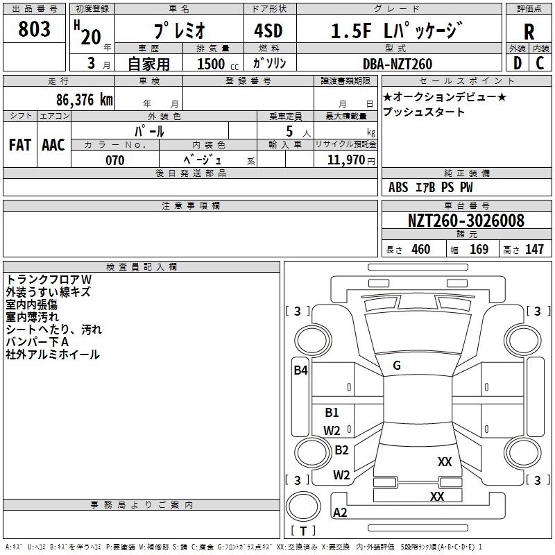 TOYOTA PREMIO 2008 г., лот № 803