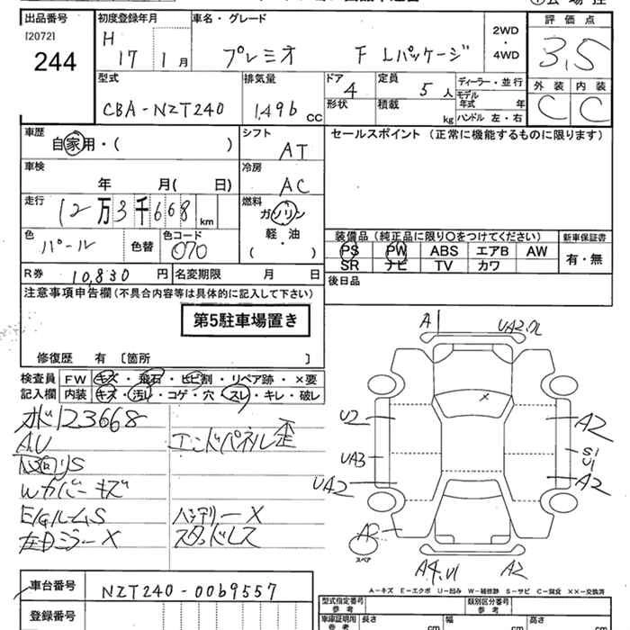 TOYOTA PREMIO 2005 г., лот № 244