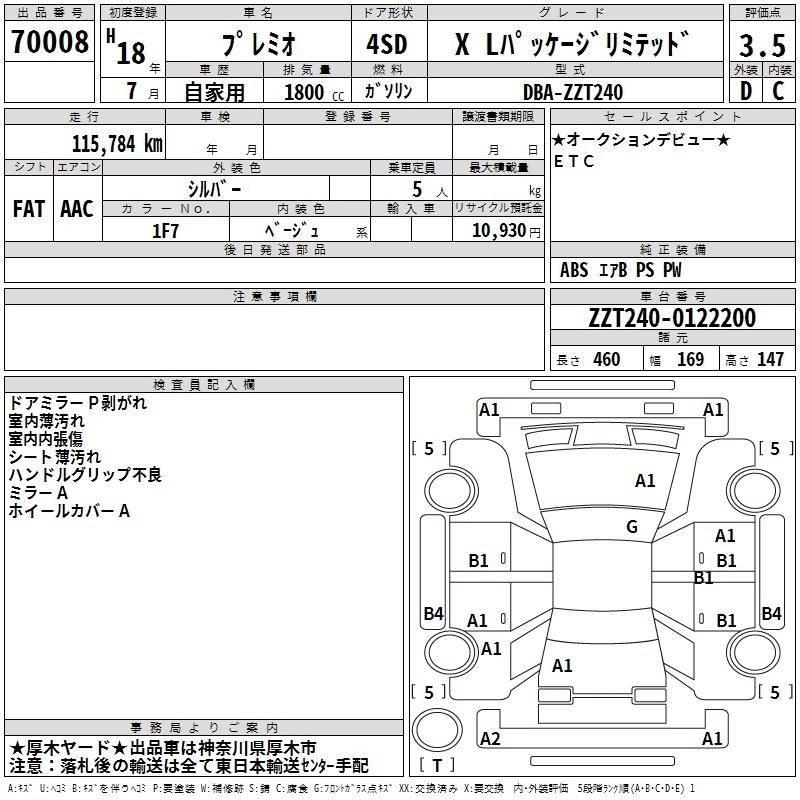 TOYOTA PREMIO 2006 г., лот № 70008