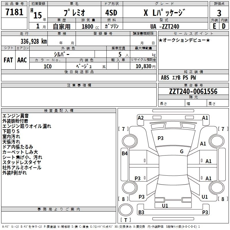 TOYOTA PREMIO 2003 г., лот № 7181
