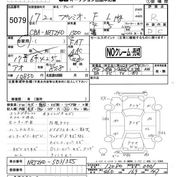 TOYOTA PREMIO 2005 г., лот № 5079