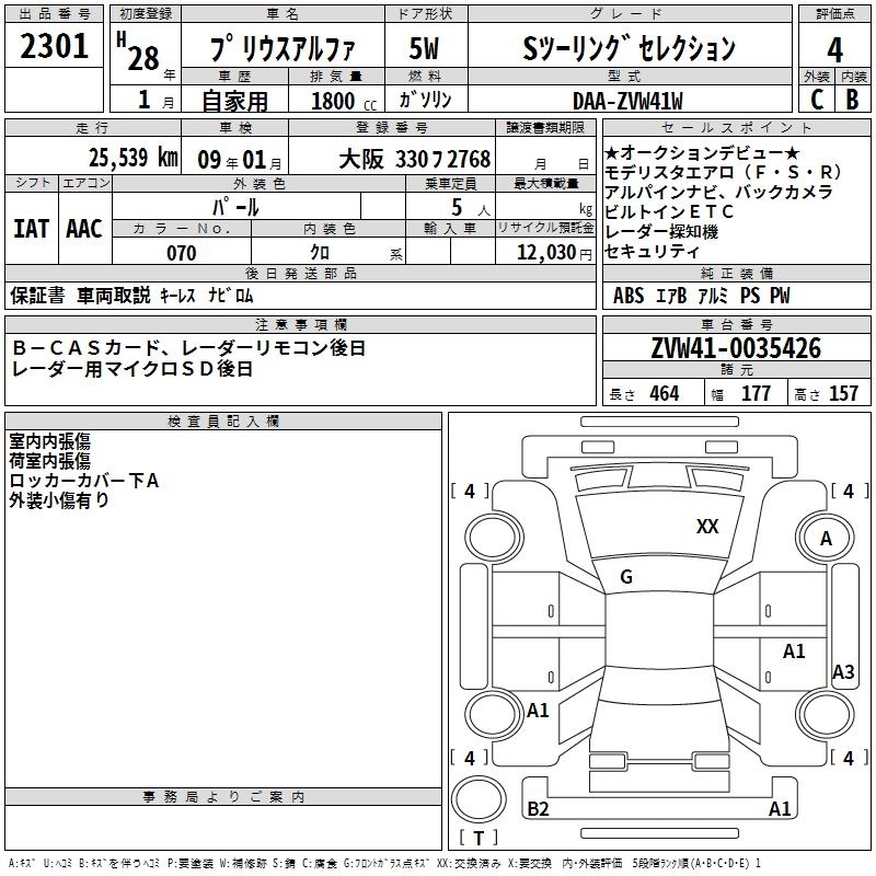 TOYOTA PRIUS ALPHA 2016 г., лот № 2301