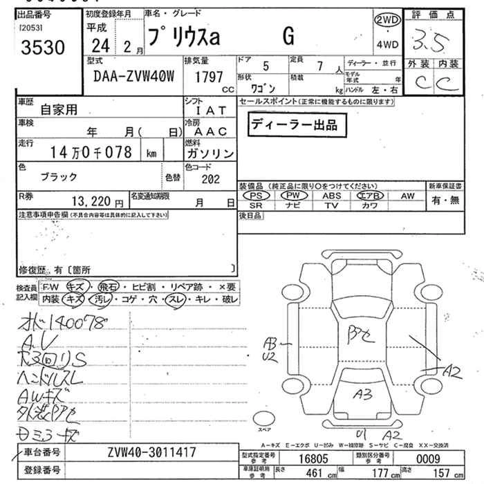 TOYOTA PRIUS ALPHA 2012 г., лот № 3530