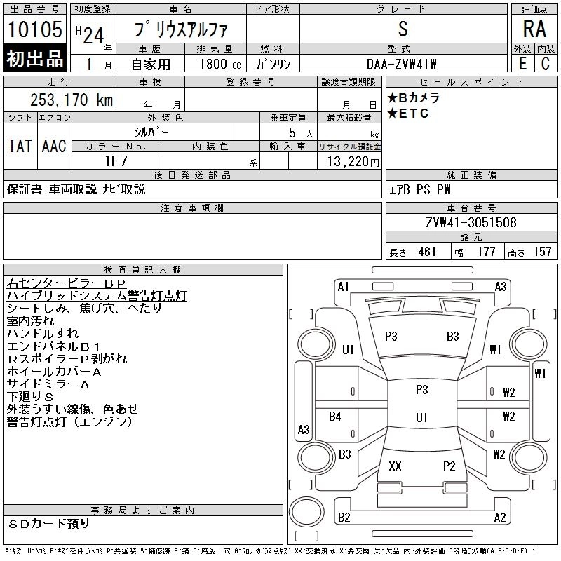 Год выпуска2012 Пробег 253 000 км КузовZVW41W КомплектацияS