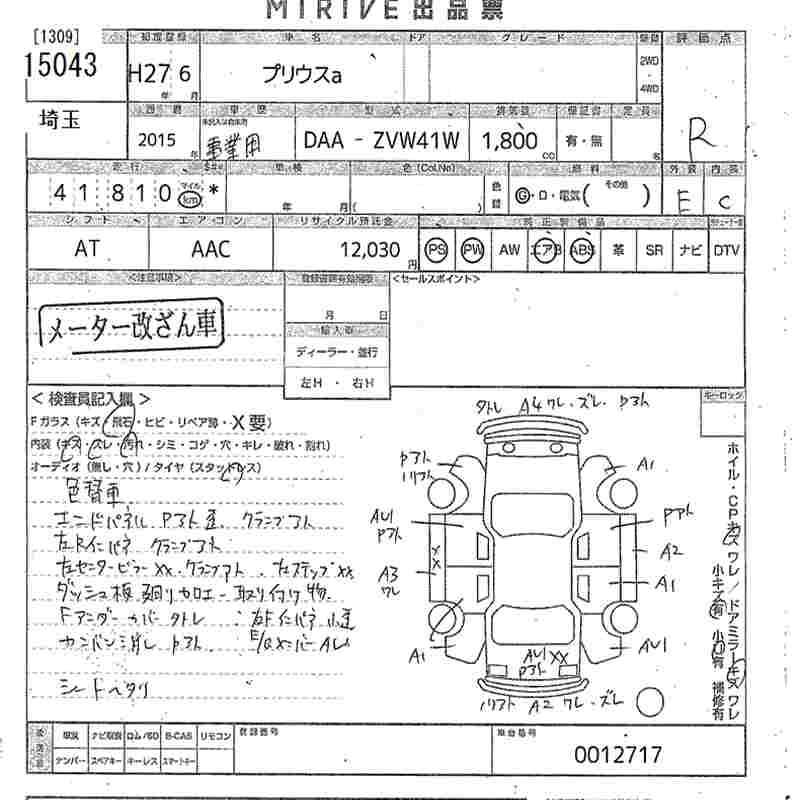 TOYOTA PRIUS ALPHA 2015 г., лот № 15043