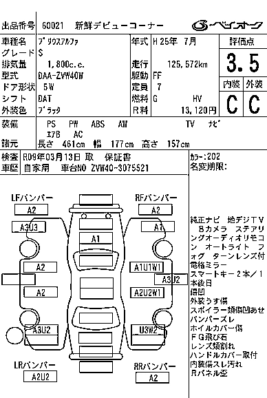 TOYOTA PRIUS ALPHA 2013 г., лот № 60021